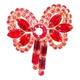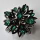 • Vintage Red & Clear Rhinestone Rose Floral Brooch Pin Green Flower