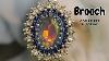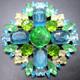 • Large 3.5 Vintage Deco Art Glass Blown Rhinestone Cabochon Brooch Czech Jewelry