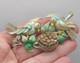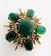 • Vintage Large Signed Brooch Green Marble Cabochons Gold Tone High End Quality
