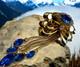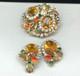 • VTG RARE Signed Bartomioli Antique Art Deco Blue & Yellow Rhinestone Brooch Pin