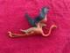 • Vintage Trifari Signed Flamingo Brooch Pink Rhinestone Crystal Gold Tone READ