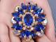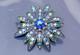 • Mazer Flower Blue Clear Pave Rhinestone Vintage High End Well Made Brooch