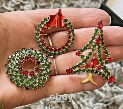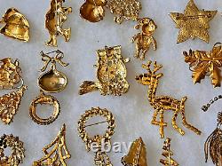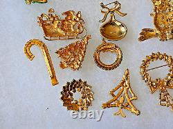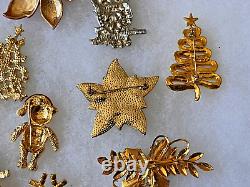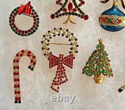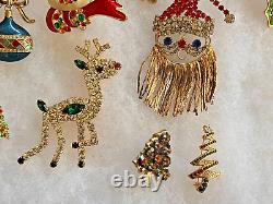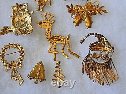 25 Vintage Christmas Pins Lot Czech Style Reindeer Christmas Tree Wreaths Santa