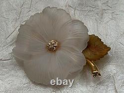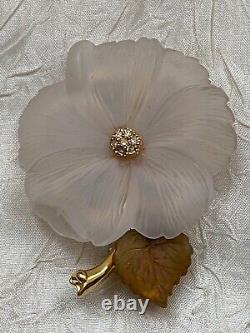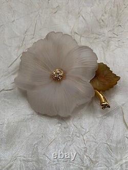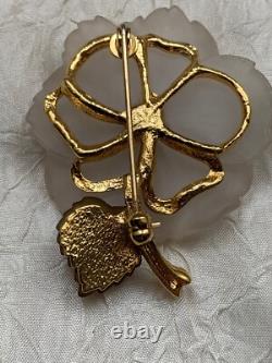 Beautiful Vintage French Brooch White Flower with rhinestones 5cm