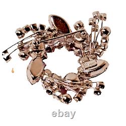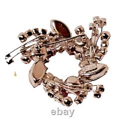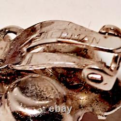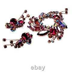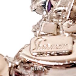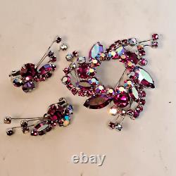 Beautiful Vintage Sherman Signed Matching Fuchsia Silvertone Brooch & Earrings