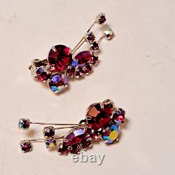 Beautiful Vintage Sherman Signed Matching Fuchsia Brooch & Earrings in silver tone setting. Earrings 1.5'' long brooch 2.5'' Great condition.