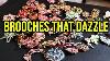 • Large 3.5 Vintage Deco Art Glass Blown Rhinestone Cabochon Brooch Czech Jewelry