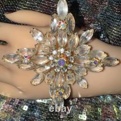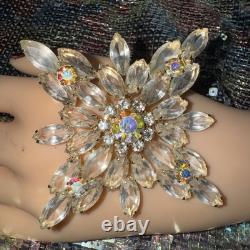 This vintage 4 brooch features a beautiful flower design set with clear and AB rhinestones. Made by Judy Lee or Beau Jewels, this unsigned piece exudes beauty and elegance.