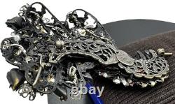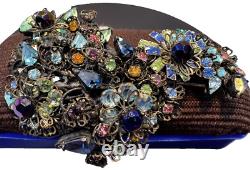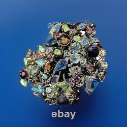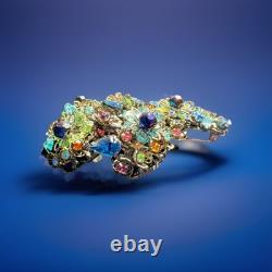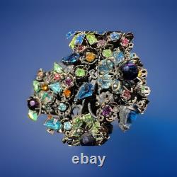 Colorful Stones : Vibrant mix of blue, green, purple, and amber elements create a striking visual impact. Dimensionality: Brooch has a three-dimensional quality with multiple levels and textures.