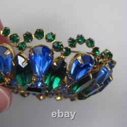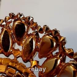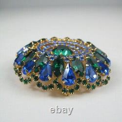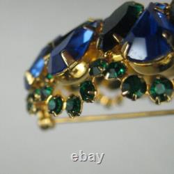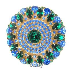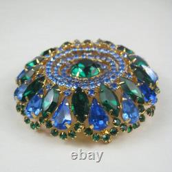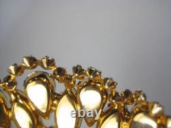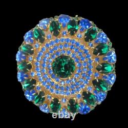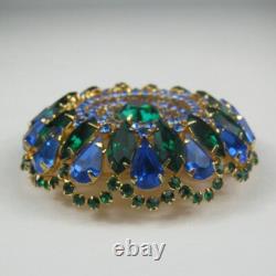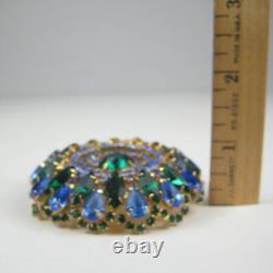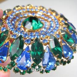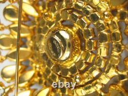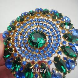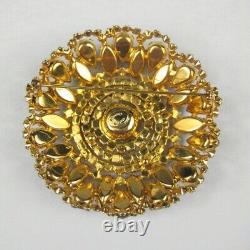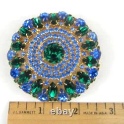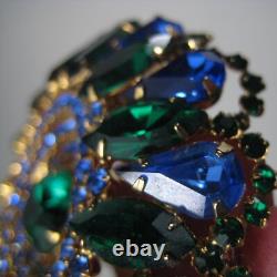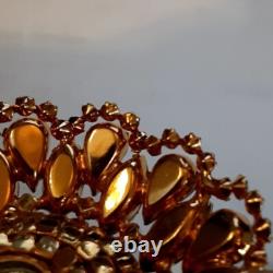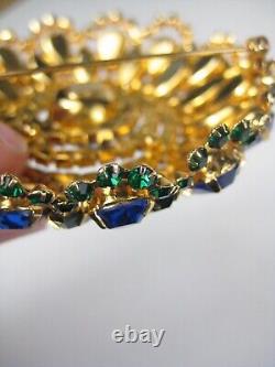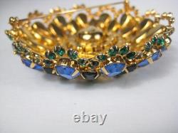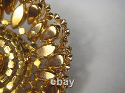 Tiny broken connection on scalloped bottom: see photo A little bit of floss stuck under neath some of the prongs. Unable to photograph Some wearing on rhinestones. Gorgeous super a large Hattie Carnegie broach. 2.5 x 2.5 x.