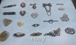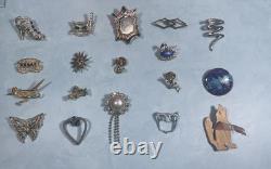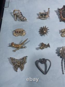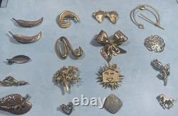 HUGE LOT OF 125 VINTAGE BROOCHES! Most unbranded, but a few are signed by companies including Monet, Gerry's , AJC, Yosca, Avon, etc. Wide variety of materials and styles , including Silver - tone, gold-tone, enamel , rhinestone , art deco, figural, floral, abstract, bow, medallion, sunburst, aigrette, etc.