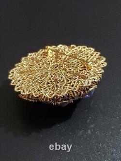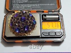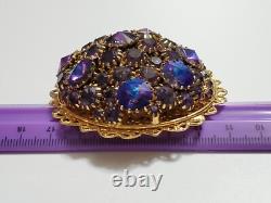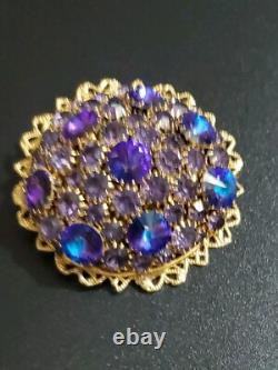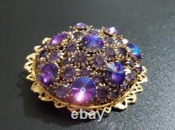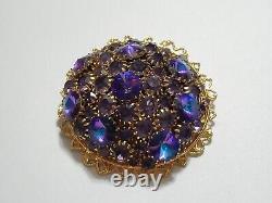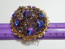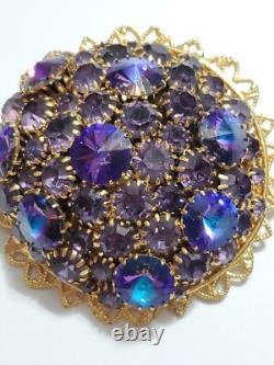 Huge Vintage Rhinestone Rivoli Crystal Purple Blue Large Filigree Brooch Pin
