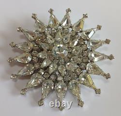 This fabulous Juliana vintage rhinestone pin measures approximately 3 (7.6 cm) across. Much more sparkly in person than the photo shows!