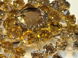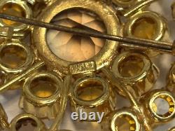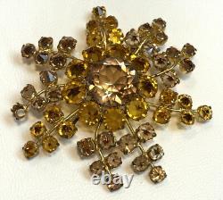 Offered here is a gorgeous vintage brooch made in Austria, featuring a Schreiner style design with inverted rhinestones. The brooch is has one missing rhinestone that can be seen in the photos. This is a truly gorgeous large brooch with a unique design.