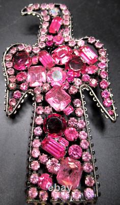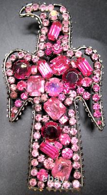 LAWRENCE VRBA Large Pink Rhinestone Regal Eagle Vintage Pin Brooch