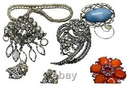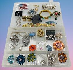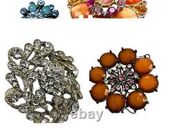 Lot 32 Vintage Rhinestone Brooch Pin Variety Of Colors Shapes Sizes Some Signed