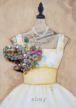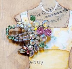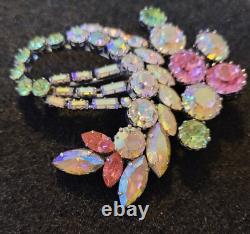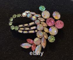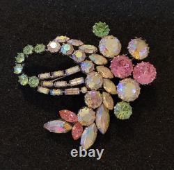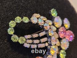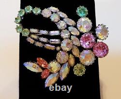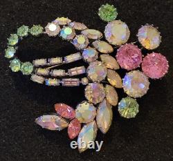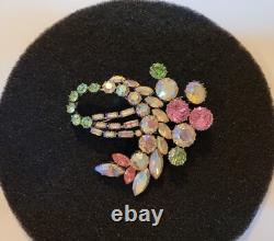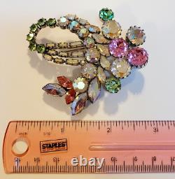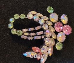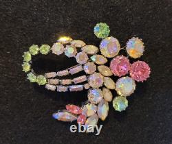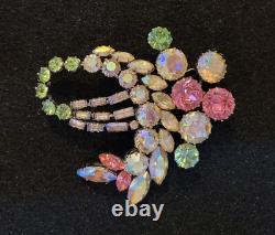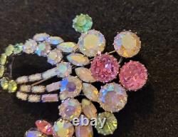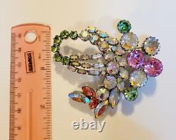 Large Vintage Austria Rhinestone Brooch Pin. Pink, green, and clear AB Rhinestones. Measures approximately 3" by 2.5" (see photos with ruler).