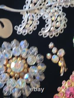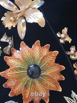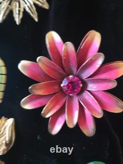 Pin Brooch Lot Bakelite Napier Sterling Coro Emmons Austria crystals H. ALSO the purple painted flower pin is hand painted and signed.