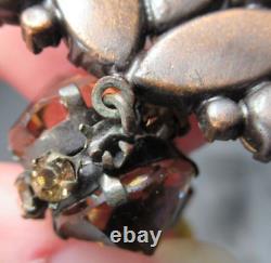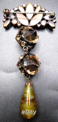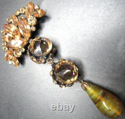 I have some amazing vintage jewelry pieces coming up so make sure you keep checking back!! Missing one stone and the setting looks a little mis shaped, not positive there was ever a stone there as the setting is slightly in the loop. They used the back to back inverted stones as well as the art glass teardrop, and no pin stop.