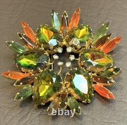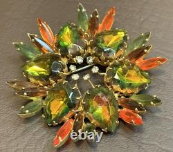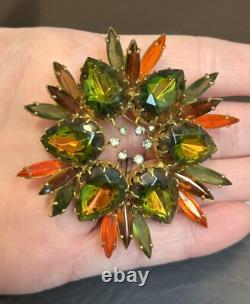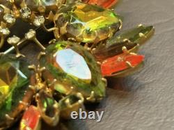 UNSIGNED BEAUTY VTG Orange Watermelon Green Dog Tooth Prongs Rhinestone Brooch