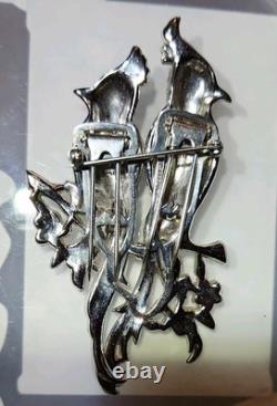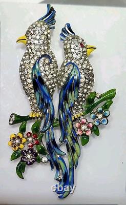 This is a CORO Brooch of 2 "lovebirds" or cockatiel birds. I believe this to be from the 1940's and made of enamel and rhinestone. There is no damages on this piece and it can come apart and turn into 2 separate brooches!!! Willing to negotiate on the price also I have MANY OTHER PIECES for sale or to do a bundle on.