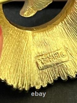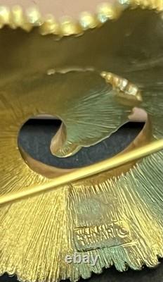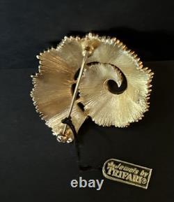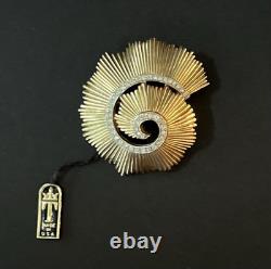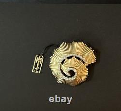 1950's Vintage CROWN TRIFARI SIGNED BROOCH SWIRL GOLD TONE WITH RHINESTONES WITH TAG ATTACHED NEVER WORN. Approx 1 3/4" x 1 3/4". Will make sure to carefully package item with lots of tissue and bubble wrap in a BOX for maximum protection! COMES FROM SMOKE FREE PET FREE HOME.