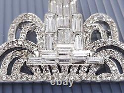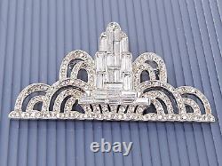 Vintage Art Deco 89 Silver Tone Clear Rhinestone Water Fountain Brooch #B092. 3 x 1 1/2 in size.
