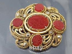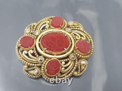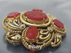 Vintage Art Deco Czech Red Glass Rhinestone Gold tone Brooch