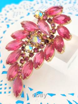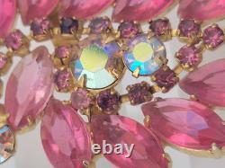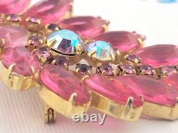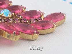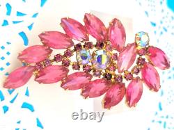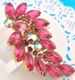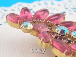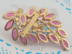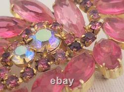 Vintage D&E Juliana Pink Open Back Rhinestone 3 Spray Brooch Pin Gold Plated