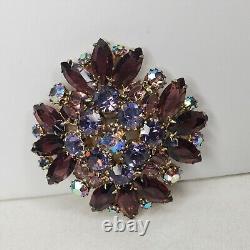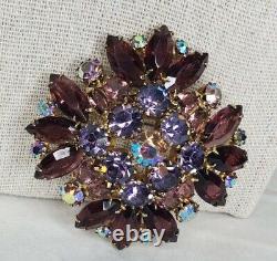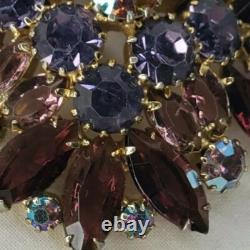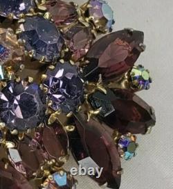 Vintage Estate Gold Tone Brooch Purple AB Rhinestones Open Backs Prong Set
