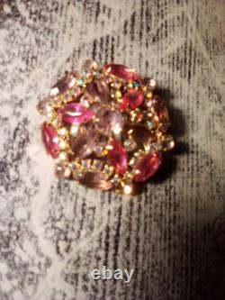 Vintage pink and purple crystal brooch with AB rhinestones. Please use photos as part of description.