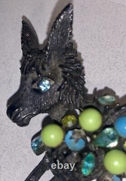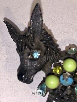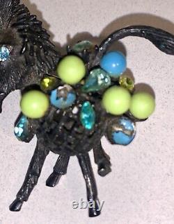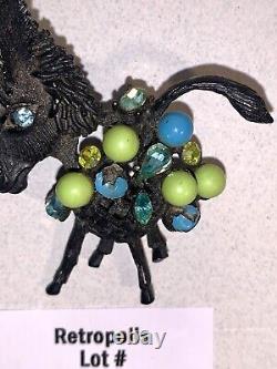 See photos as the enamel coloring is chipping away. It measures about 2.5 and has the Hattie Carnegie marking on the back. The item is in vintage condition, see photos for all specific details. Exact age is not known.