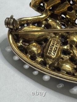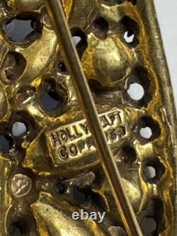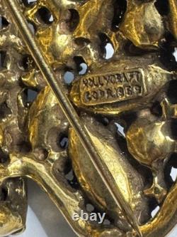 The Vintage Hollycraft Corp 1959 Brooch is a beautiful and colorful piece of jewelry featuring a multicolor design with rhinestones. Made by the Hollycraft brand in 1959, this brooch exudes a classic and timeless elegance.