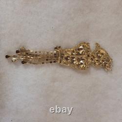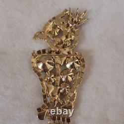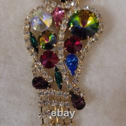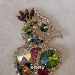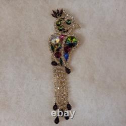 The Vintage Juliana D&E Ravioli Rhinestone Parrot Brooch is a stunning piece of jewelry featuring multicolor rhinestones in a unique ravioli design. The brooch is adorned with multicolor glass stones set in an unknown metal, creating a vibrant and eye-catching accessory. Perfect for adding a touch of vintage charm to any outfit, this brooch captures the elegance and beauty of a bygone era of fashion.