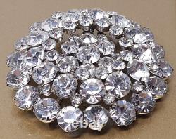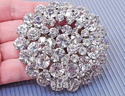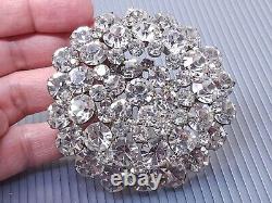 Vintage Juliana DE Large Round White Rhinestone Silver tone Brooch. 3 x 3 in size.