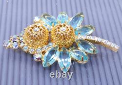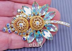 Vintage Juliana Delizza & Elster Blue Rhinestone Gold tone Brooch