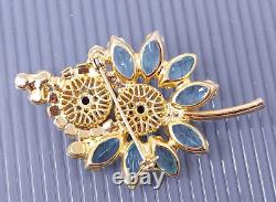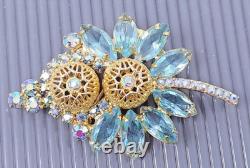 Vintage Juliana Delizza & Elster Blue Rhinestone Gold tone Brooch. 2 1/2 x 1 1/2 in size.