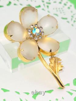 Vintage Juliana Gripoix Open Back Rhinestone Flower Floral Brooch Gold Plated