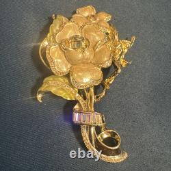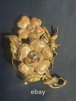 Vintage Kirks Folly Gold Tone Enamel AB Rhinestone Fairy Brooch Pin