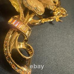 The enamel and rhinestone materials add sparkle and texture to the piece, making it a great statement accessory. The brooch is in excellent condition and is sure to delight any fan of fairytale and fantasy themes.