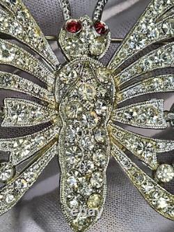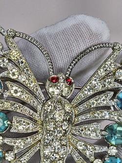 Vintage Large Butterfly Rhinestone Brooch (Needs Professional Cleaning)