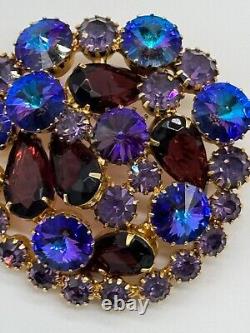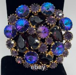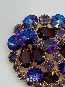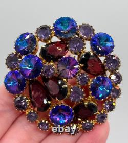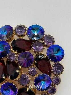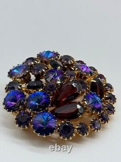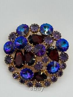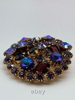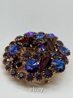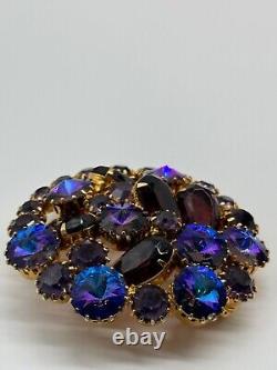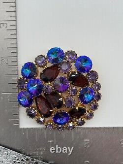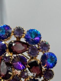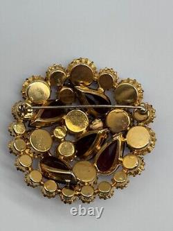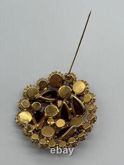 This listing is for a Vintage Multicolor Rivoli Rhinestone Gold Tone Brooch Unsigned. It is in good vintage condition with age/use related wear, one of the darker red rhinestones has a chip on the back of the rhinestone (see photos) and a few of the prongs need to be closed. Please look closely at all photos for condition. If you have any questions, please message me. Thanks for looking at my listing.