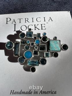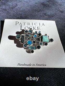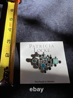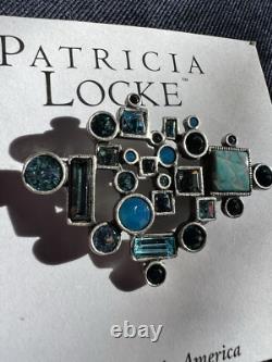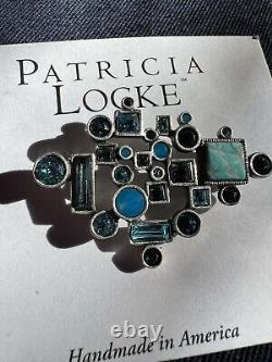 Add a touch of vintage elegance to your outfit with this stunning Patricia Locke Bermuda Blue Crystal Rhinestone Brooch. The intricate design features an abstract art deco pattern with sparkling blue crystals and rhinestones that will catch the eye of anyone who sees it. This brooch is perfect for any occasion, whether it's for an engagement, graduation, birthday, or even a Christmas party. The brooch is signed by the renowned jewelry designer Patricia Locke and made in the United States. It is made of high-quality materials and crafted with precision to ensure its longevity.