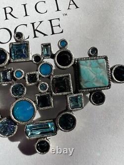 Vintage Patricia Locke Bermuda Blue Crystal Rhinestone Brooch Abstract Art Deco