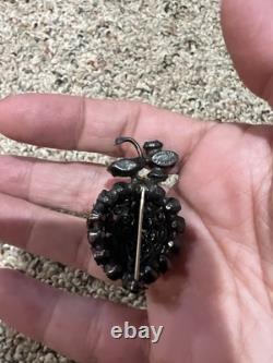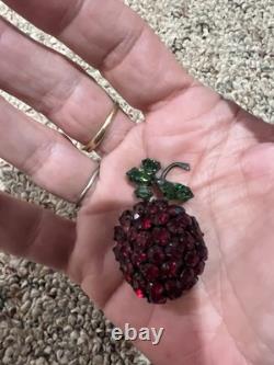 Vintage Schreiner New York Strawberry Brooch Pin Red Rhinestones 1950s Japanned