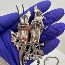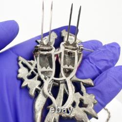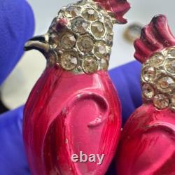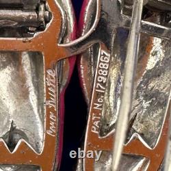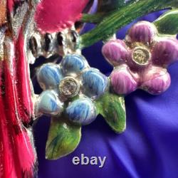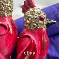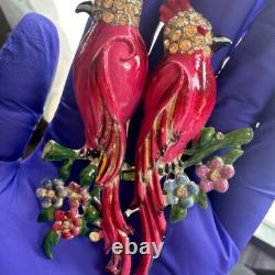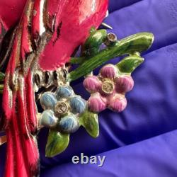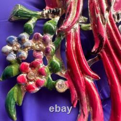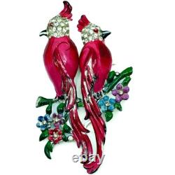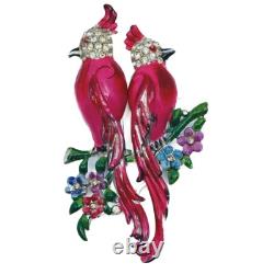 Vintage Signed Coro Duette Enamel Rhinestone Lovebirds Fur Clip Brooch Patent 1798867. This is a stunning and collectible vintage Coro Duette brooch featuring two vivid pink enamel lovebirds perched on a floral branch, adorned with rhinestone accents and vibrant hand-painted details. The piece features the original Coro Duette mechanism allowing it to function as both a brooch and two individual fur clips. The reverse is clearly signed "Coro Duette" and marked with the patented number 1798867, filed by Adolph Katz in 1930-confirming its authenticity and collectible status. The brooch weighs 50 grams and measures approximately 3.5 inches tall by 2 inches wide. The pin has a minor bend but still functions securely, and both fur clip mechanisms are working properly. We are willing to work with you on price if you're purchasing 2 or more items! We prioritize your satisfaction and stand by the quality of our products. The item must be in its original, unused condition with all original tags and packaging included.