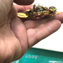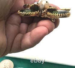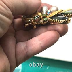 Vintage Signed Demario Wired Layered Brooch Pin Rhinestones Faux Pearls