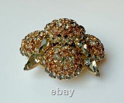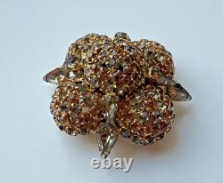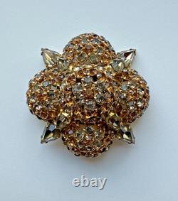 Vintage Signed Warner Orange & Smoky Rhinestone Domed Cluster Large Brooch Pin