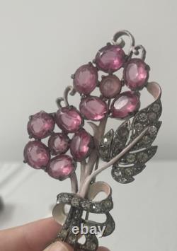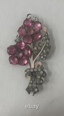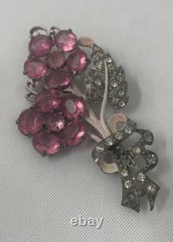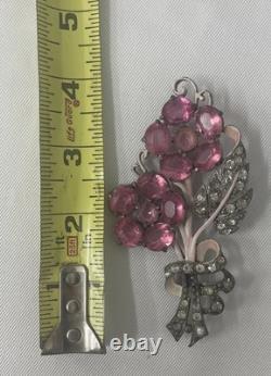 Vintage Staret Signed Pink Crystal Rhinestone Flower Pin Brooch (Code 2WDN)