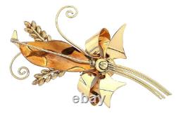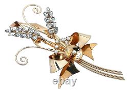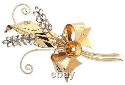 VINTAGE STERLING 12K GOLDWASH FLORAL RHINESTONE PEARL 4 1/4 INCH BROOCH EBS5080. VINTAGE STERLING 12K GOLDWASH FLORAL RHINESTONE PEARL BROOCH.